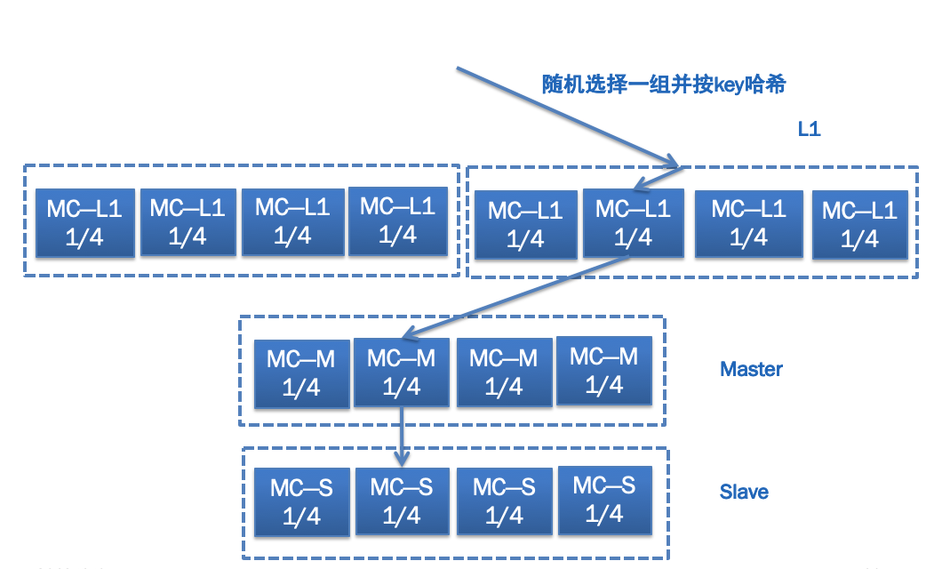 Master主要起到防止访问穿透到数据库的作用,所以一般内存大小要比L1大得多,以存储尽可能多的数据。当L1缓存没有命中时,不能直接穿透到数据库,而是先访问Master。