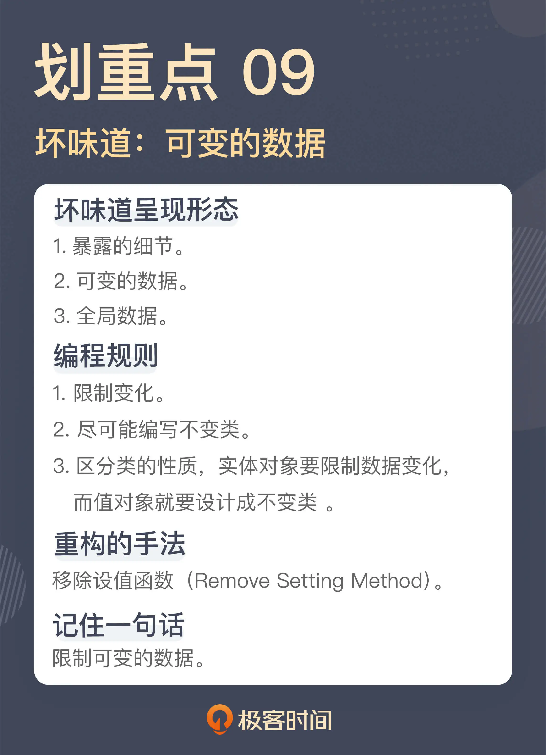 今天我们又讲了一类与很多人编程习惯不符的坏味道:可变的数据。