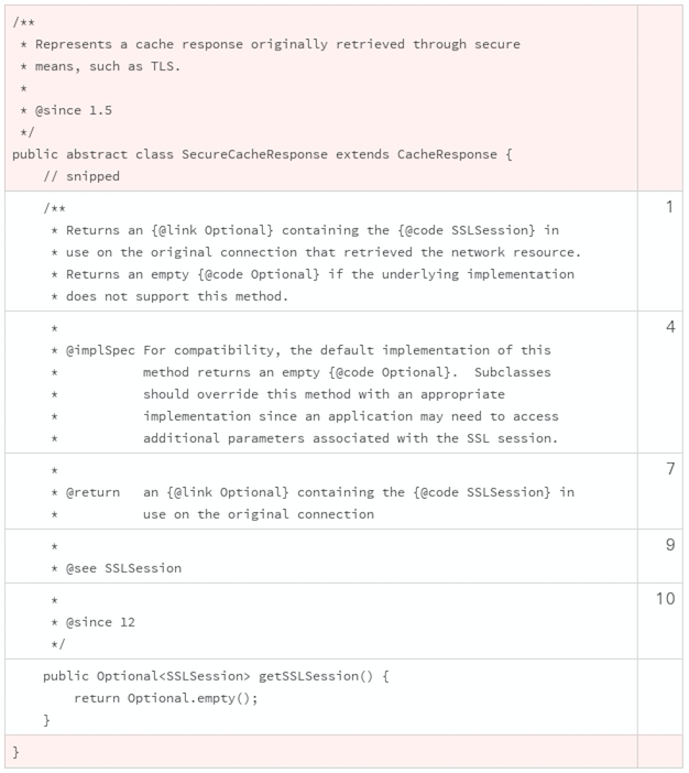比如在上面的例子中,如果需要修改Readable,当看到“since 1.5”的标签时,我们就不需要检查Java 1.4的代码了。