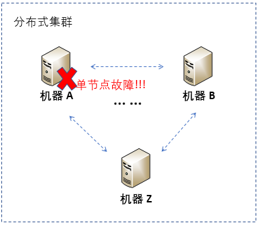 简单地说,节点故障就是单个机器自身出现故障。比如,由机器A、B,……,Z构成的分布式集群中,机器A自身出现故障,而不是非机器之间的网络连接出现故障,就是节点故障。