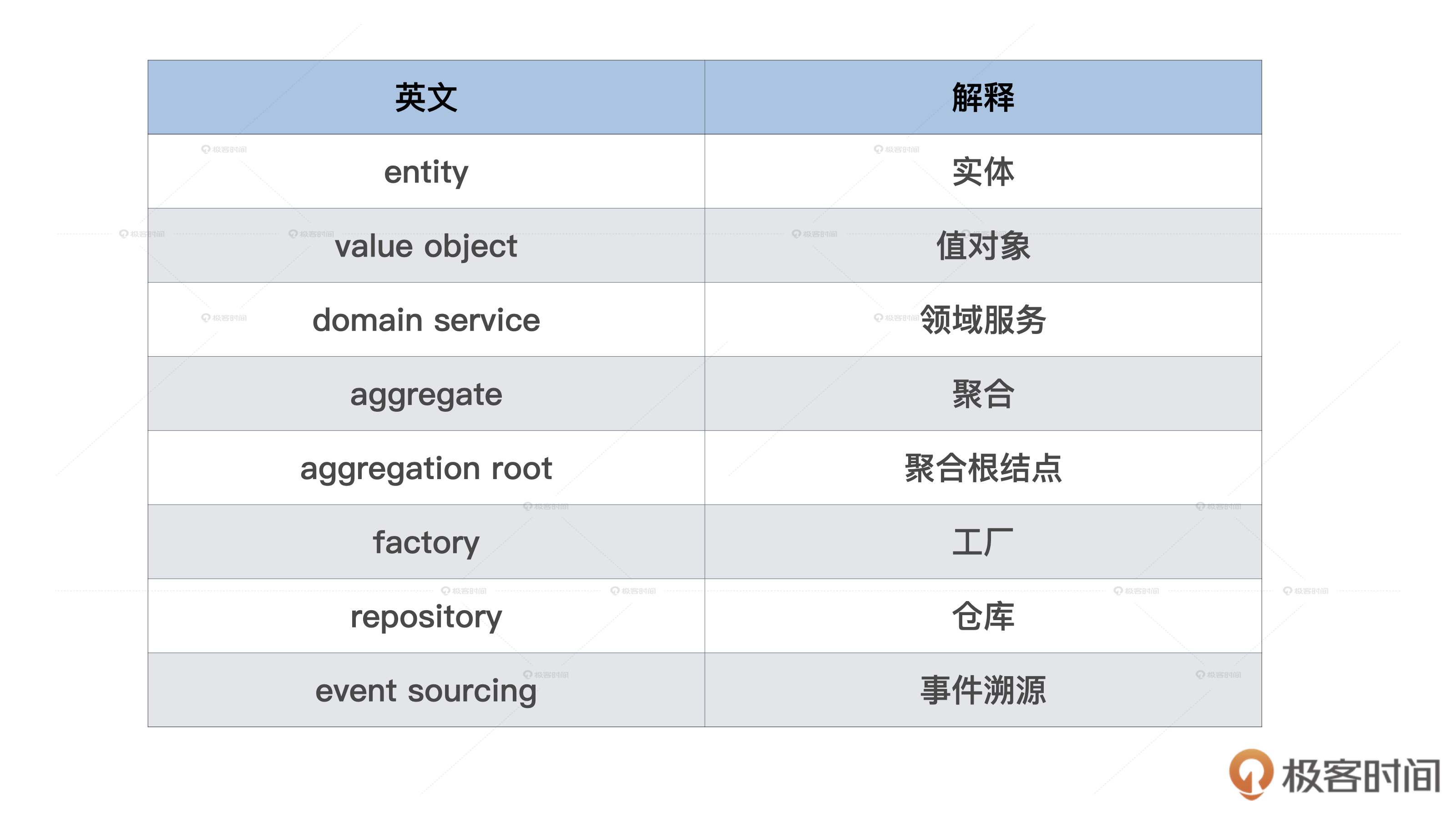 这节课会涉及到一些英文专有名词。我用表格形式做了梳理,你可以在进入正文之前先了解一下: