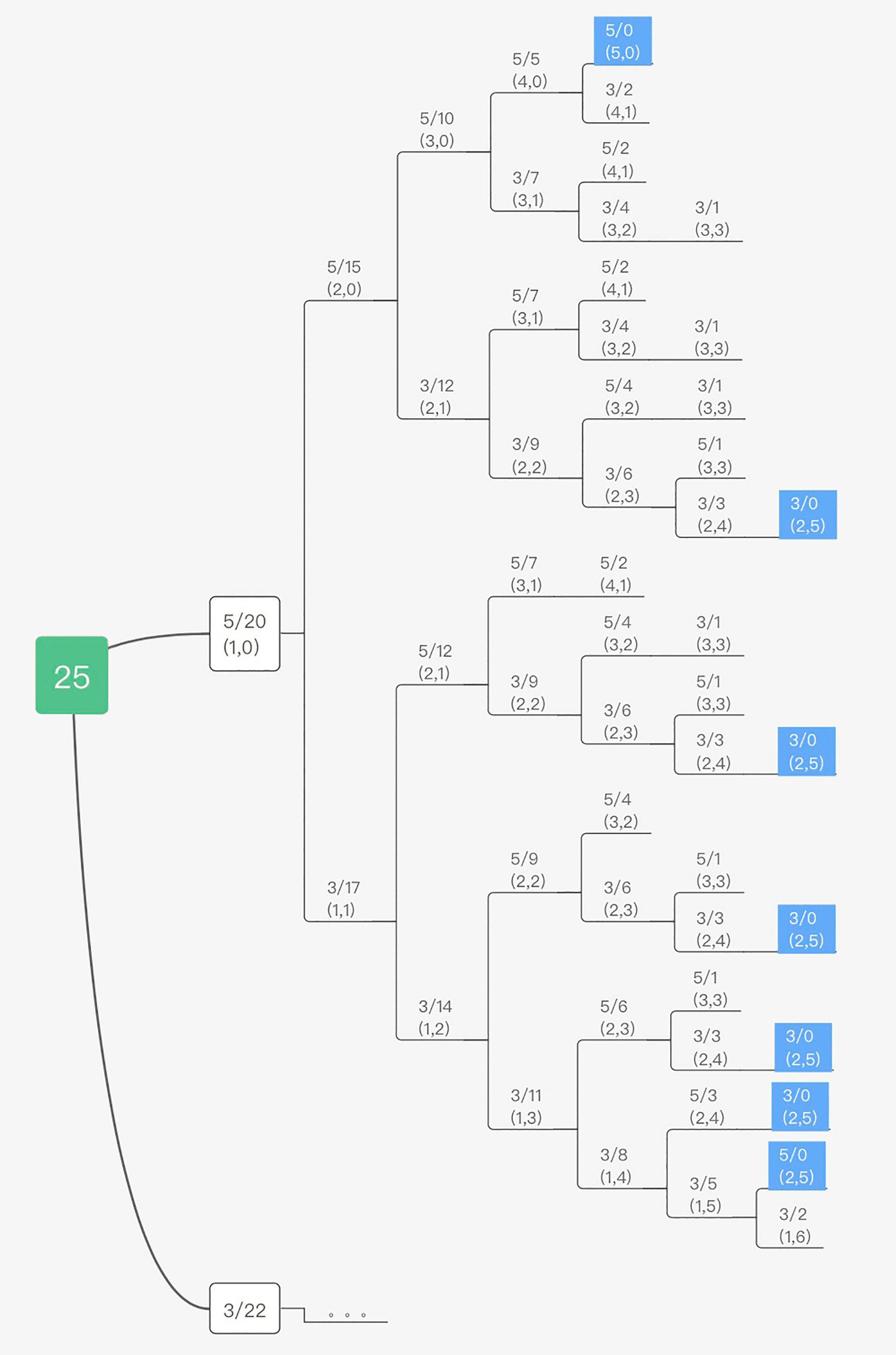 所以动态规划这种计算的单向性也就强调了子问题之前的依赖必须是单向的,换言之,如果问题A的最优解需要通过问题B的最优解直接或者间接计算出来,那么问题B的最优解必定不能直接或者间接需要通过问题A的最优解来计算。这也就是在前文中提到的,动态规划的实际计算一定是一棵树,因为树可以确保这种性质,如下图所示。