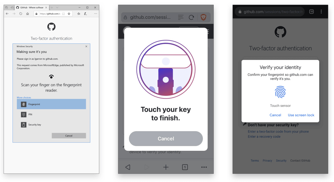 不过,由于WebAuthn相对比较复杂,在学习后面的内容之前,我建议如果你的设备和环境允许的话,可以先在GitHub网站的2FA认证功能中,实际体验一下通过WebAuthn完成的两段式登录。