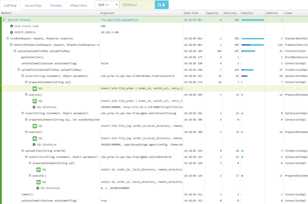 这里我放了一张Pinpoint的追踪效果截图,从图中可以看到参数、变量等相当详细的方法级调用信息。不知道你还记不记得,在上节课“日志分析”里,我把“打印追踪诊断信息”列为了反模式,并提到,如果需要诊断方法参数、返回值、上下文信息,或者方法调用耗时这类数据,通过追踪系统来实现,会是比通过日志系统实现更加恰当的解决方案。