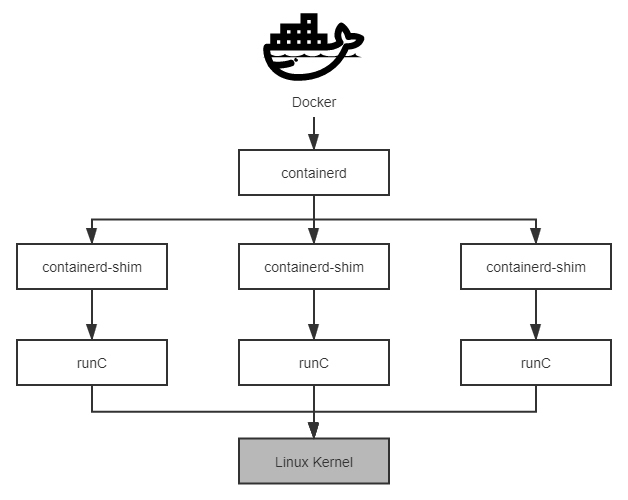 而为了能够兼容所有符合标准的OCI Runtime实现,Docker进一步重构了Docker Daemon子系统,把其中与运行时交互的部分抽象为了containerd项目。