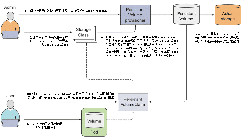 无论哪种情况,都难以符合Kubernetes工业级编排系统的产品定位,对于大型集群,面对成百上千,来自成千上万的Pod,靠管理员手工分配存储肯定是无法完成的。在2017年Kubernetes发布1.6版本后,终于提供了今天被称为Dynamic Provisioning的动态存储解决方案,让系统管理员摆脱了人工分配的PersistentVolume的窘境,并把此前的分配方式称为Static Provisioning。