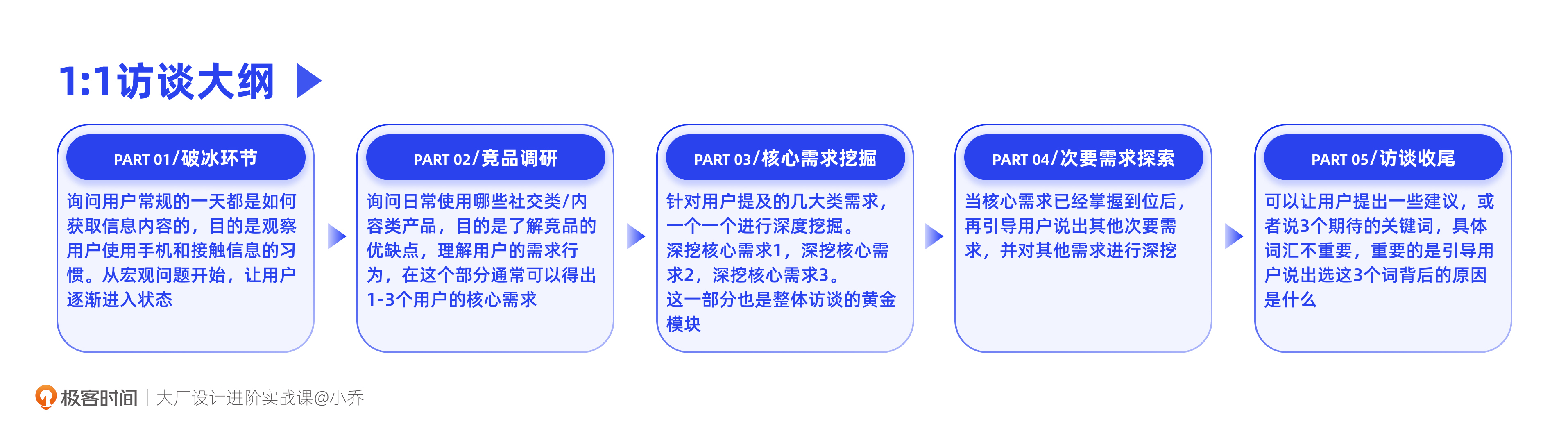接下来就是第3步,也是最关键的一步,与用户进行1:1访谈。