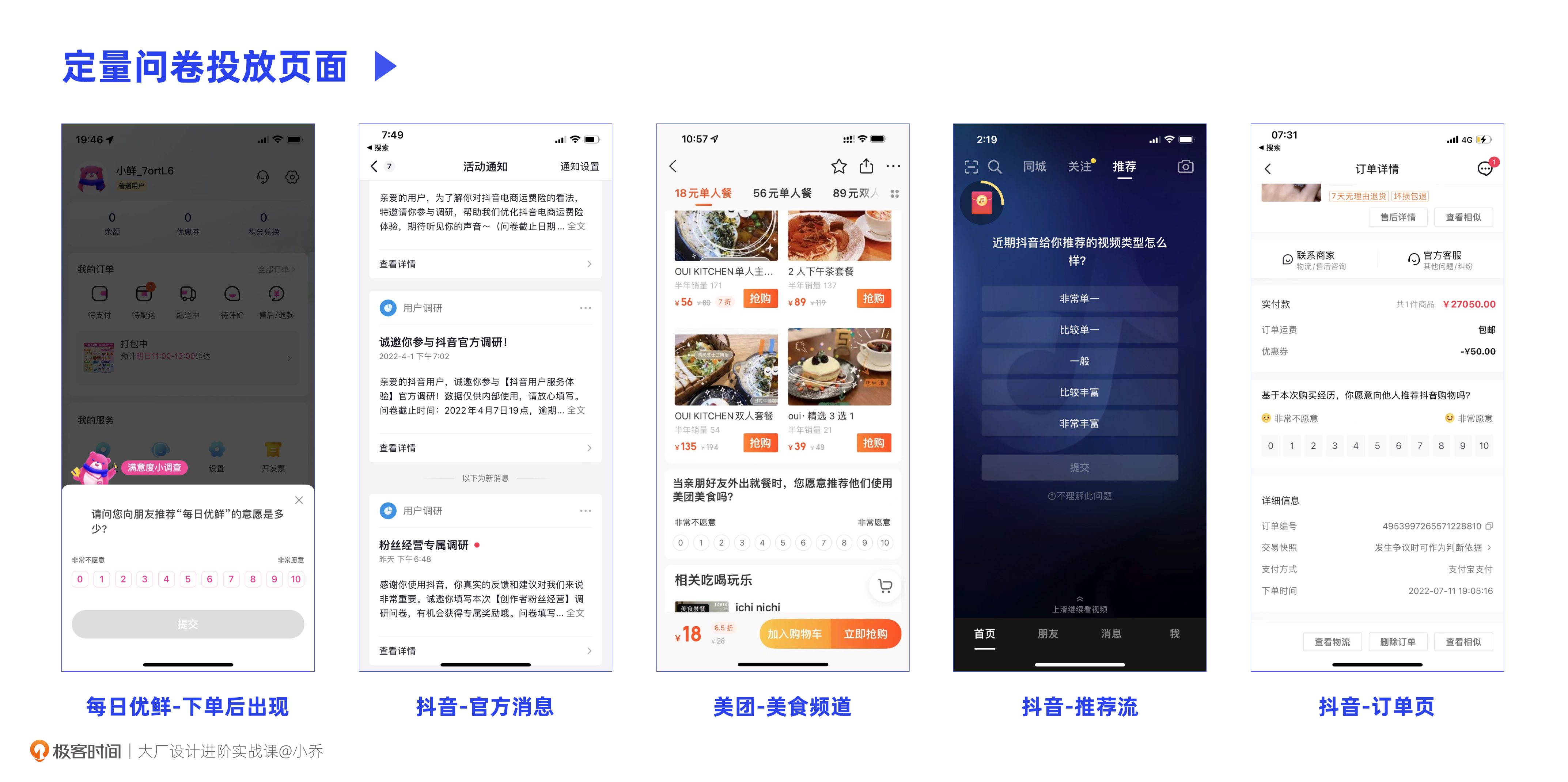 投放问卷的渠道,可以是官方消息号、内容流、商品卡片、直播页面,或任何符合询问场景的界面。