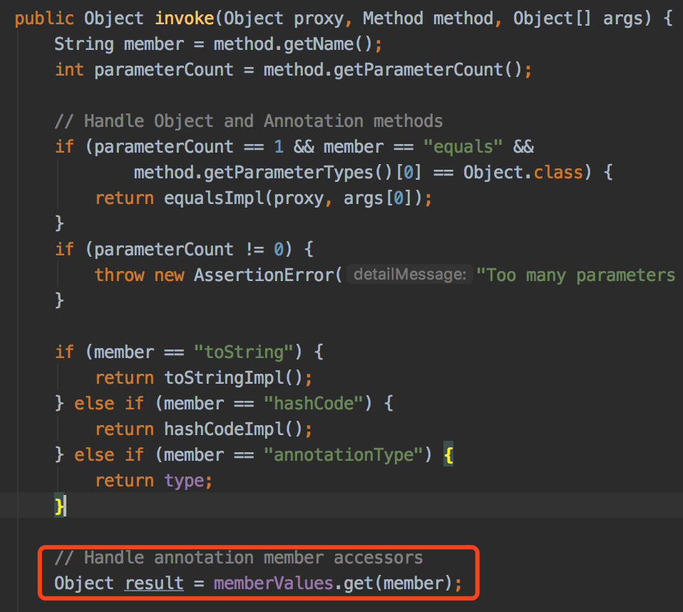 Proxy是动态代理,它会基于Java反射机制去动态实现代理类的功能。在Java中,调用一个Proxy类的entrySet()方法,实际上就是在调用InvocationHandler中的invoke方法。在invoke方法中,Java又会调用memberValues.get(member)。其中,memberValues是AnnotationInvocationHandler构造函数中的第二个参数。