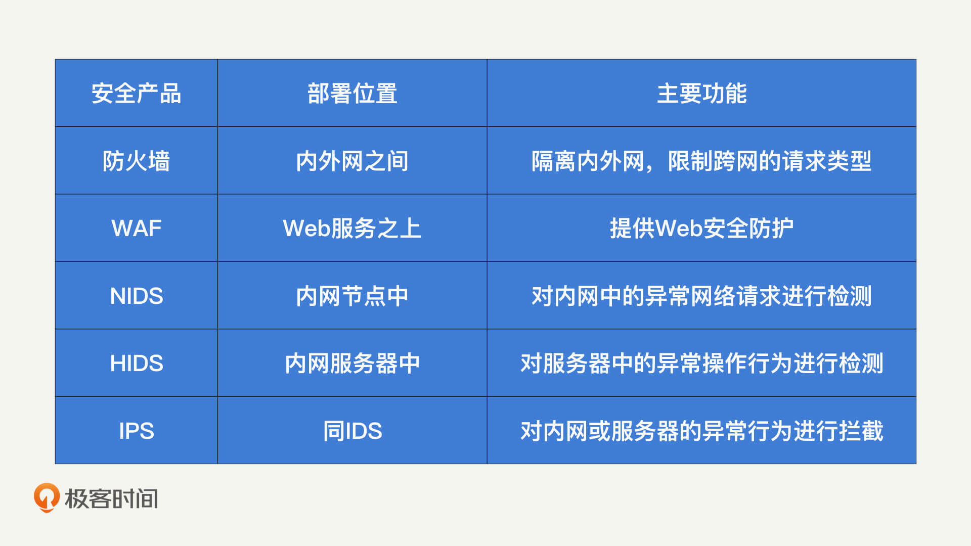 为了加深你对防火墙、WAF、IDS和IPS这些安全产品的理解,我整理了一个对比表格。-