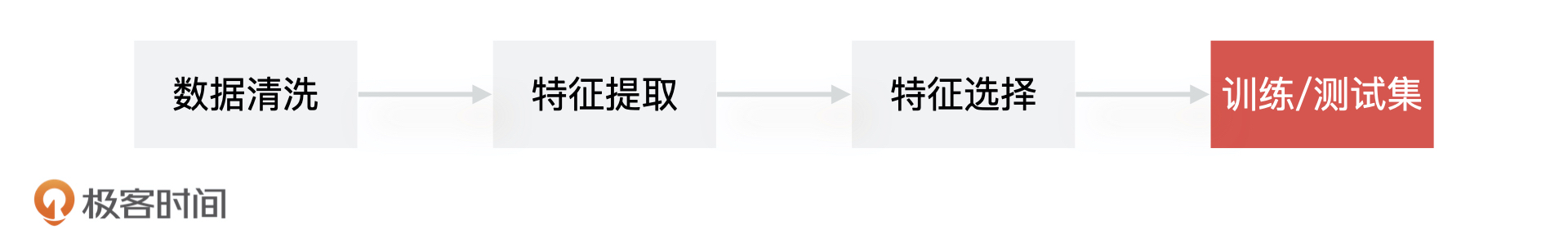 更具体点来说,建立特征工程的流程是,先做数据清洗,再做特征提取,之后是特征筛选,最后是生成训练/测试集。