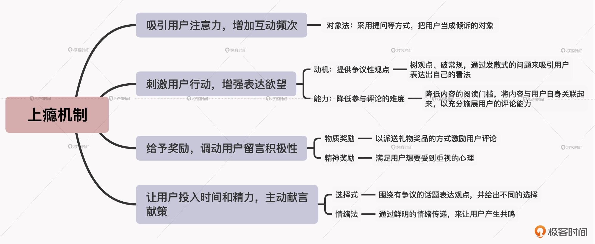 这节课我根据“上瘾机制”的原理,给你介绍了四种提升用户评论量的方法,你在创作中可以独立使用,也可以组合使用。这里要注意,你在使用的过程中,要针对每一种方法及时做好反馈测试,这样可以帮助自己更好地理解用户的需求,让彼此建立亲密感,提升信任度。