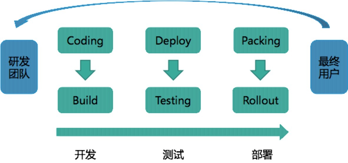 持续交付也通常以“发布流水线”的方式来解释,即研发团队从开发,到测试,再到部署,最终将产品交付给最终用户使用的过程。如下图: