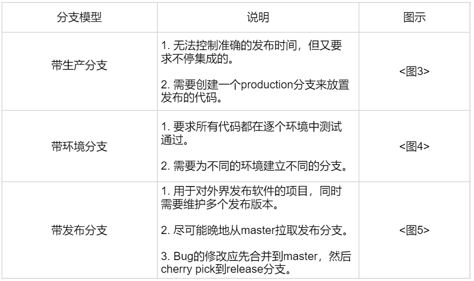 GitLab Flow 针对不同的发布场景,在GitHub Flow(特性分支加master分支)的基础上做了改良,额外衍生出了三个子类模型,如表2所示。-