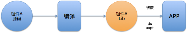 传统的移动App组件集成及编译的方式如图3所示。组件先以源码的方式集成到目标项目,然后对整个项目进行编译。如果组件比较多的话,采用这种方式的编译时间会非常长。有时,甚至要编译1个多小时。显然,我们不会接受这种低效的集成与编译方式。