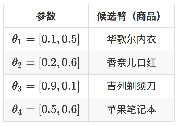 \(x_{i}\\times\\theta_{j}\),这就是给男性用户推荐剃须刀,给女性用户推荐口红,即使是新用户,也可以作出比随机猜测好的推荐,再观察用户是否会点击,用点击信息去更新那个被推荐了的候选臂的参数。
