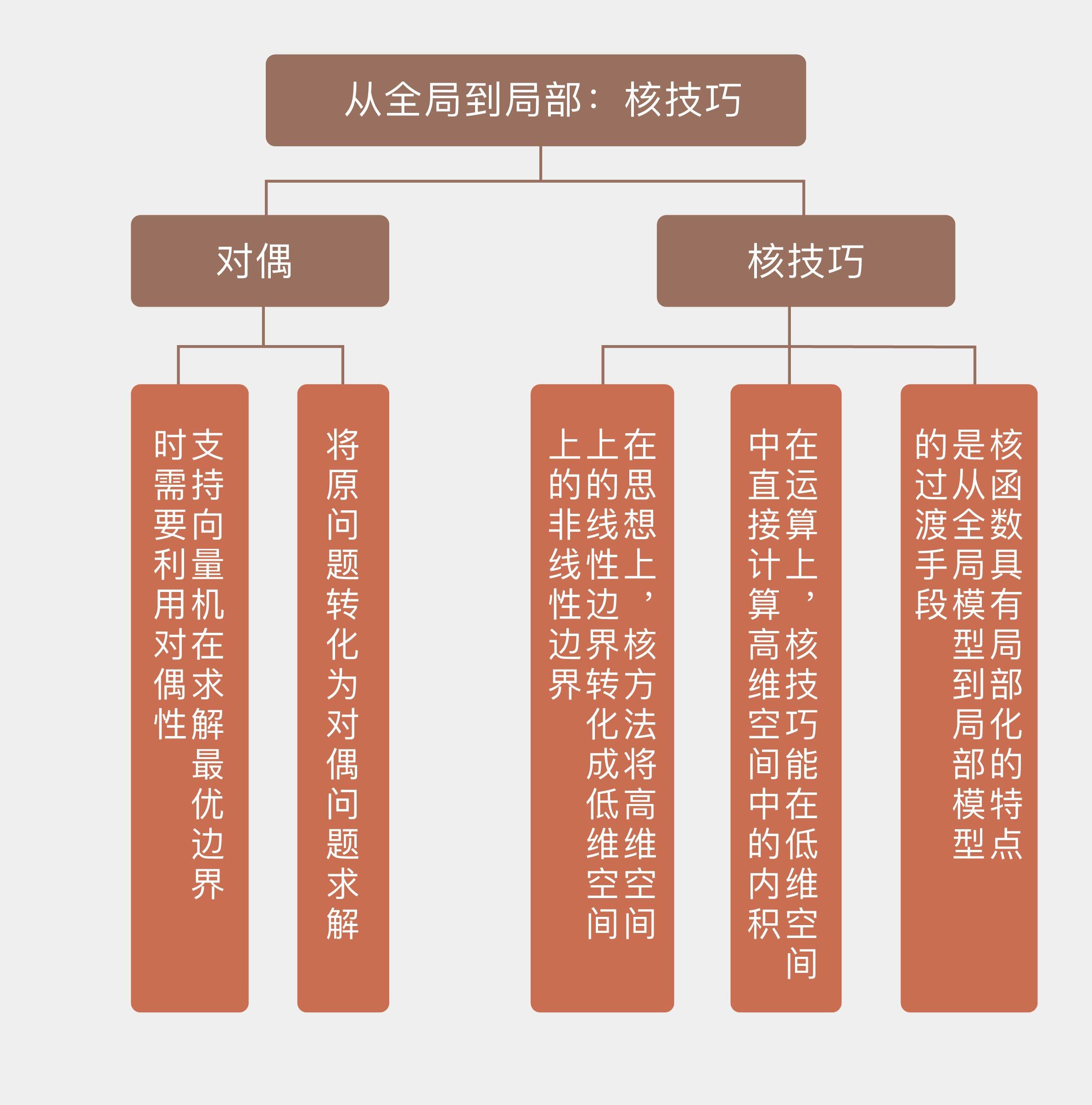 今天我和你分享了支持向量机中对偶和核技巧的概念与原理,其要点如下: