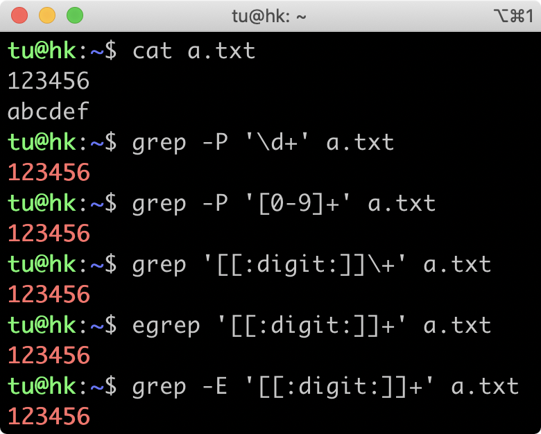 如果你在 Linux 系统的一些命令行中使用正则,比如使用 grep 过滤内容的时候,你可能会发现结果非常诡异,就像下图这样,在grep命令中,使用正则\d+取不到数据,甚至在 egrep 中输出了英文字母d那一行。