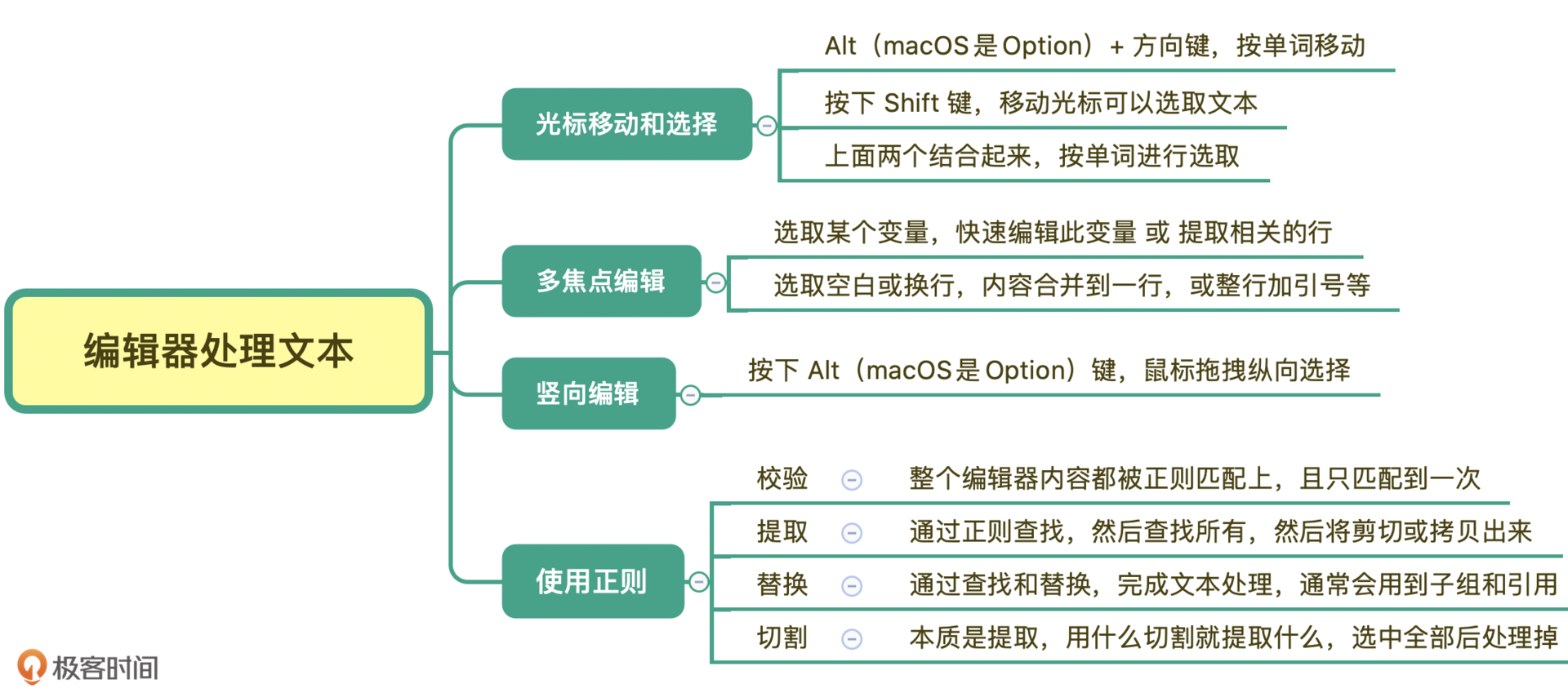 你可能要问了,这是正则专栏,为啥不直接开始讲正则?其实我给你讲的编辑器使用技巧,能够帮助我们更好地完成工作。因为我们学习正则的目的,就是想高效地完成文本处理。