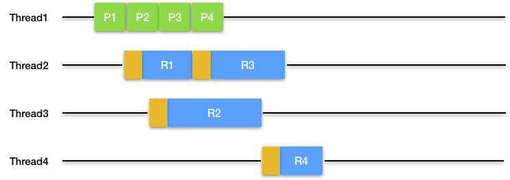 我们看到ExecutionStrategy接口比较简单,它将具体任务的生产委托内部接口Producer,而在自己的produce方法里来实现具体执行逻辑,也就是生产出来的任务要么由当前线程执行,要么放到新线程中执行。Jetty提供了一些具体策略实现类:ProduceConsume、ProduceExecuteConsume、ExecuteProduceConsume和EatWhatYouKill。它们的区别是: