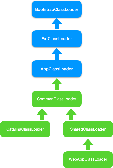 老办法,还是再增加一个CommonClassLoader,作为CatalinaClassLoader和SharedClassLoader的父加载器。CommonClassLoader能加载的类都可以被CatalinaClassLoader和SharedClassLoader 使用,而CatalinaClassLoader和SharedClassLoader能加载的类则与对方相互隔离。WebAppClassLoader可以使用SharedClassLoader加载到的类,但各个WebAppClassLoader实例之间相互隔离。