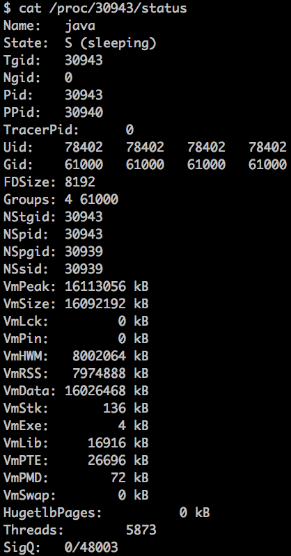 2.接着查看进程状态的大致信息,通过cat/proc/<pid>/status命令: