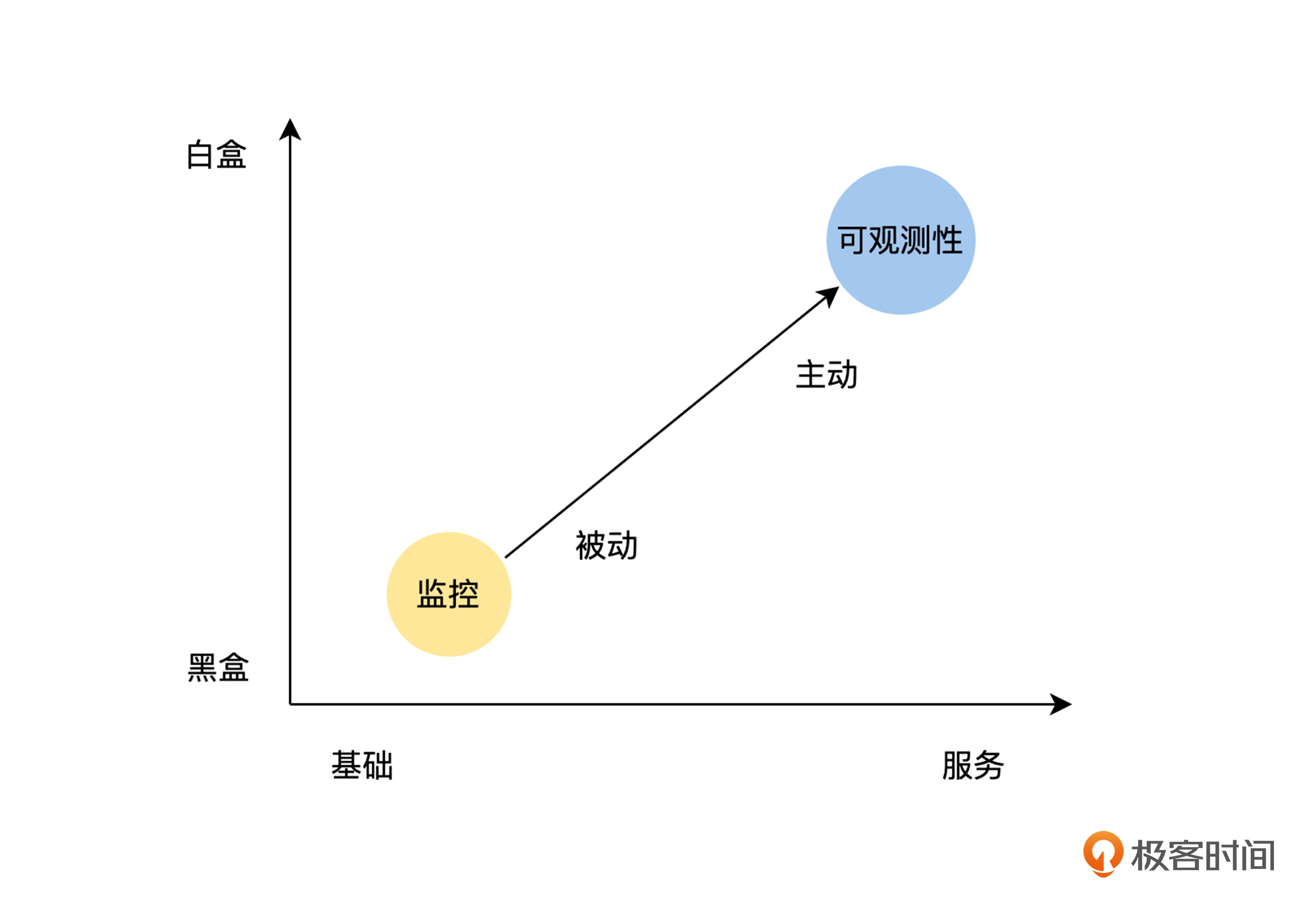 首先,监控到可观测性是从黑盒往白盒方向的进化。监控更注重结果,即当前出现了什么问题,或者将要出现什么问题;而可观测性也同等关注问题出现的原因,即通过内部状态的展示来回答这个问题。