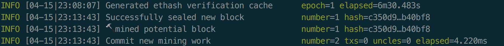 在我的远程开发机上一共耗费了6分半,又经过了4分钟,我挖到了第一个块,如下图所示。