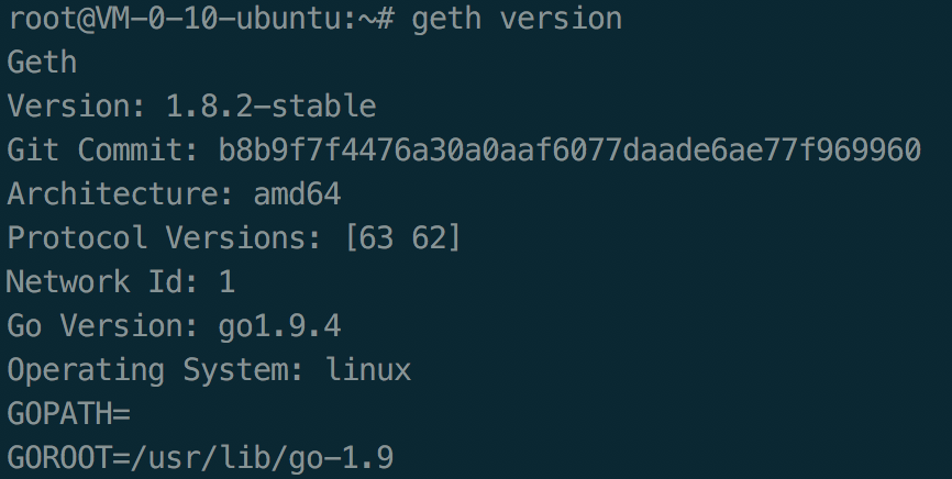 安装成功后,我们可以查看Geth的版本。