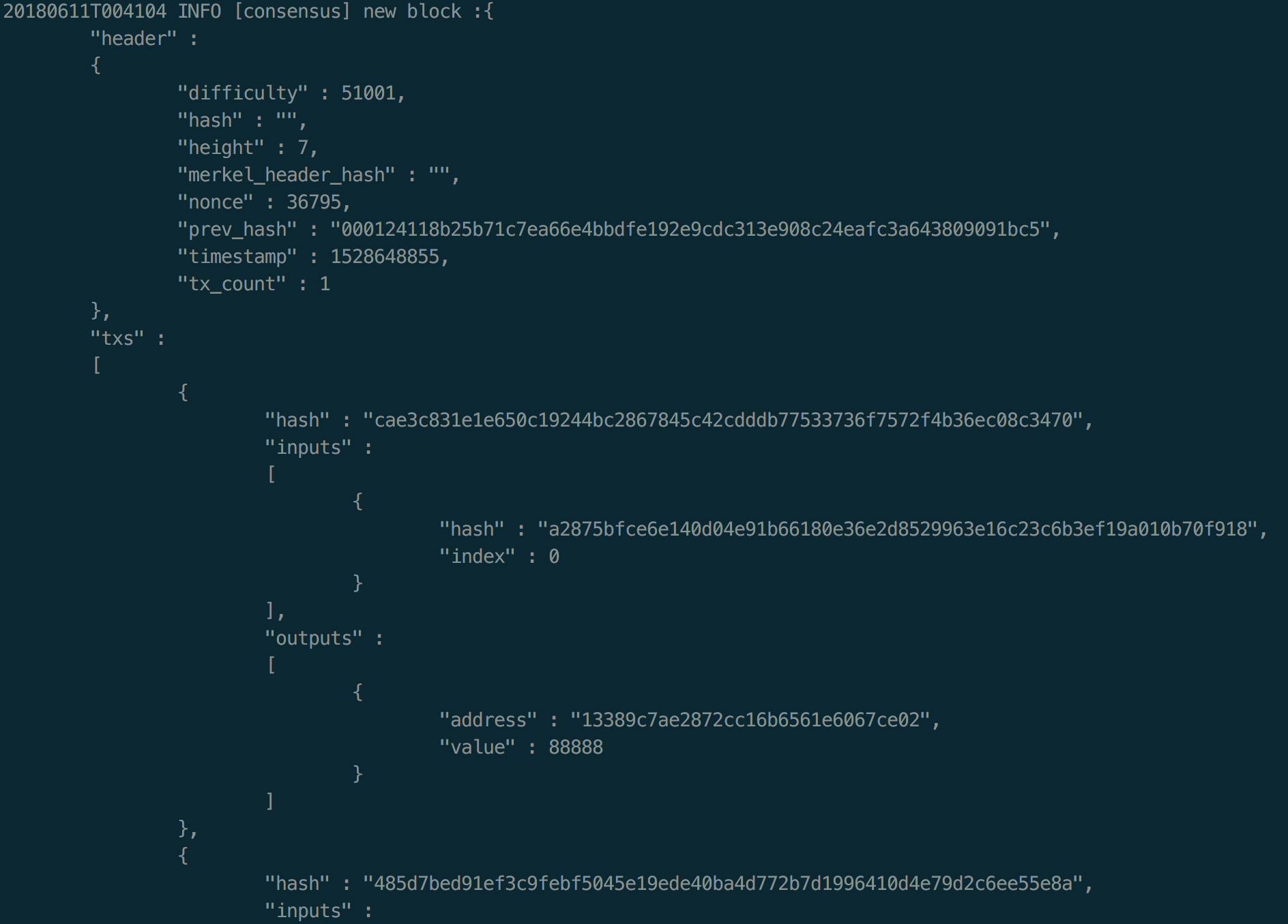 20180610T232356 INFO [consensus] new block :{