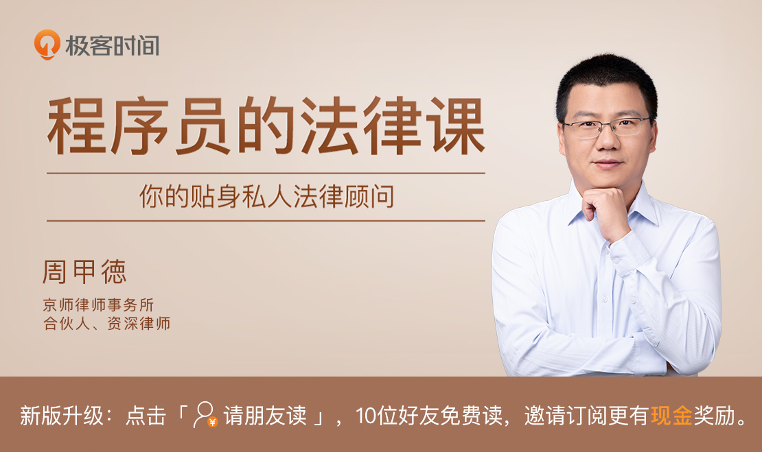 这些都是懂点法、有风险意识的具体体现,也是专栏中我想要教给你、让你能做到的东西。我选取了职场上、技术上和生活中的40多个经典场景,结合自已多年的执业经验和感受,把我见过的“雷区”和解决手段都告诉你,让你尽可能不走或少走法律的弯路。我们一起,从现实场景出发,再回到现实的风险意识和解决方案。
