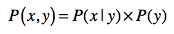 解释清楚了条件概率,我就可以列出概率、条件概率和联合概率之间的“三角”关系了。简单地说,联合概率是条件概率和概率的乘积,采用通用的公式来表达就是: