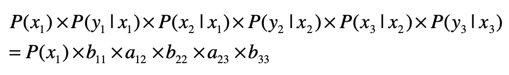 那么在这个两层模型示例中,“隐藏状态层”产生“输出层”的概率是多少呢?这是一系列条件概率决定的,具体的公式我列在这里。