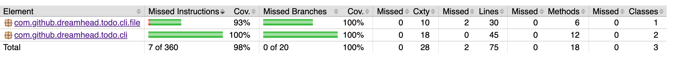 Rule violated for package com.github.dreamhead.todo.cli.file: lines covered ratio is 0.9, but expected minimum is 1.0
