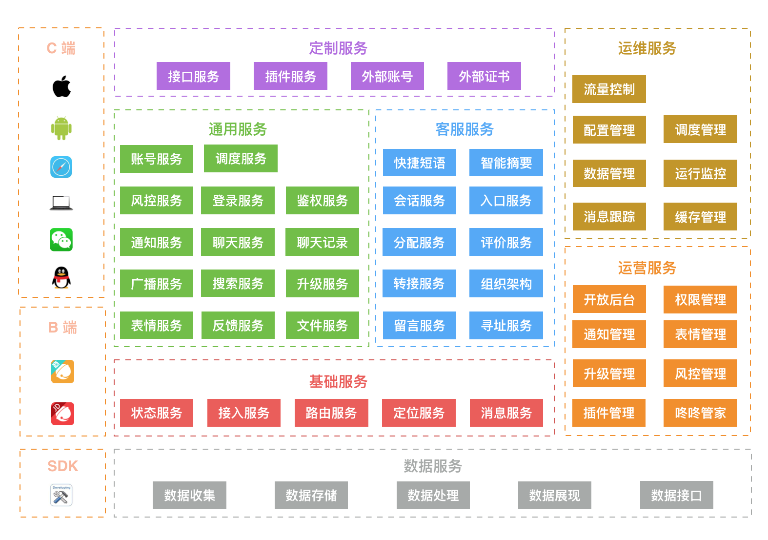 而在多年的工程实践中,我逐渐得到了一些维度的视图,下面就以我近些年一直在持续维护、设计、演进的系统(京东咚咚)为例来简单说明下。