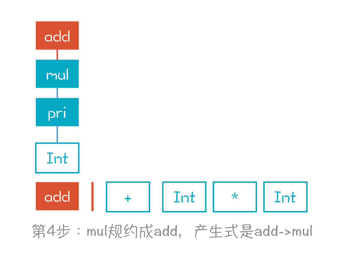 注意,这里也有两个选择,比如把pri继续规约成mul。但它显然也是错误的选择。