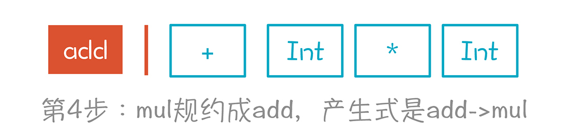 第4步,依据“add->mul”做规约,从状态7回到状态1,再依据add元素进入状态2。