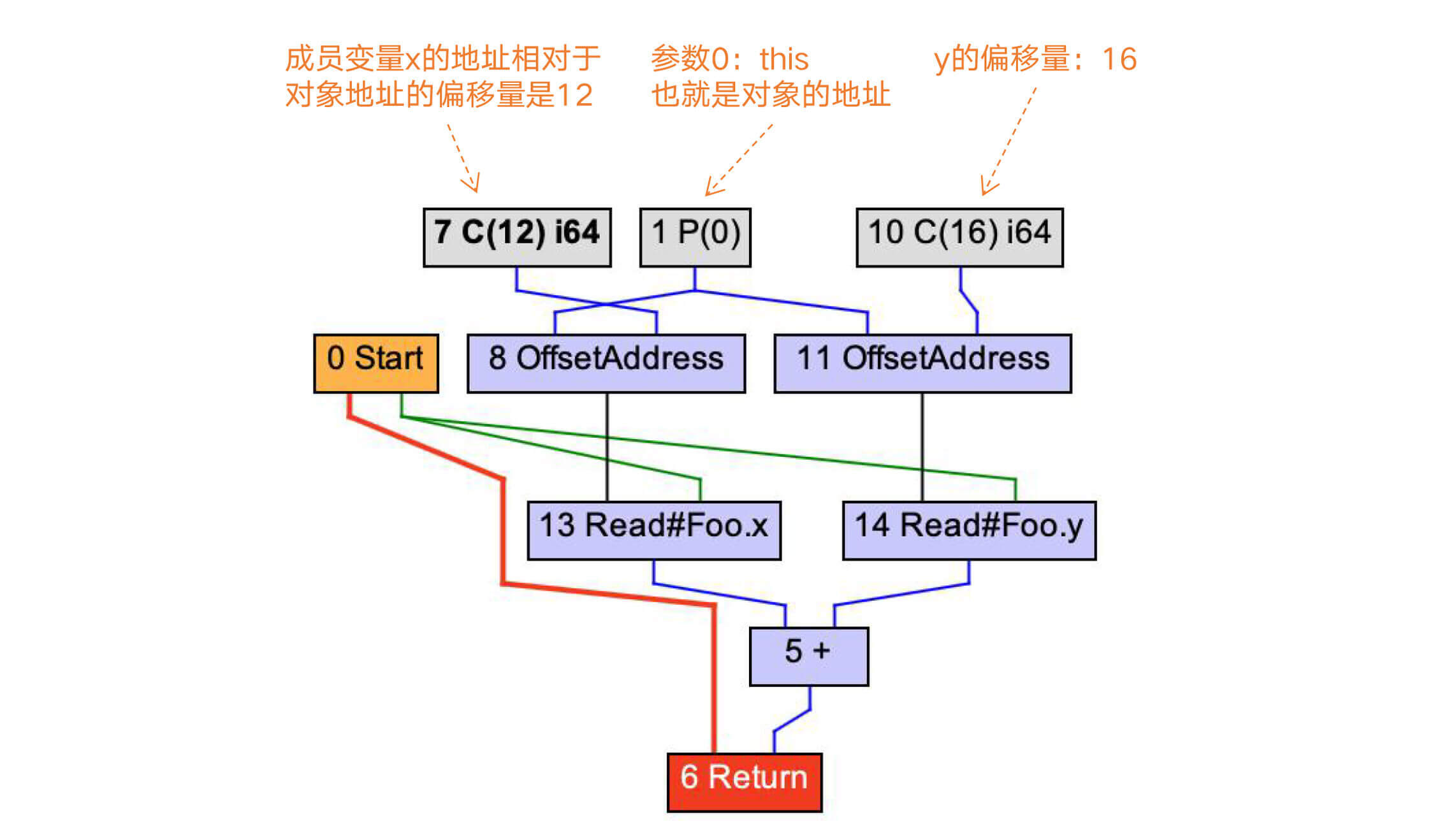 在做了Lower处理以后,LoadField会被展开成更底层的操作:根据x和y的地址相对于对象地址的偏移量,获取x和y的值。