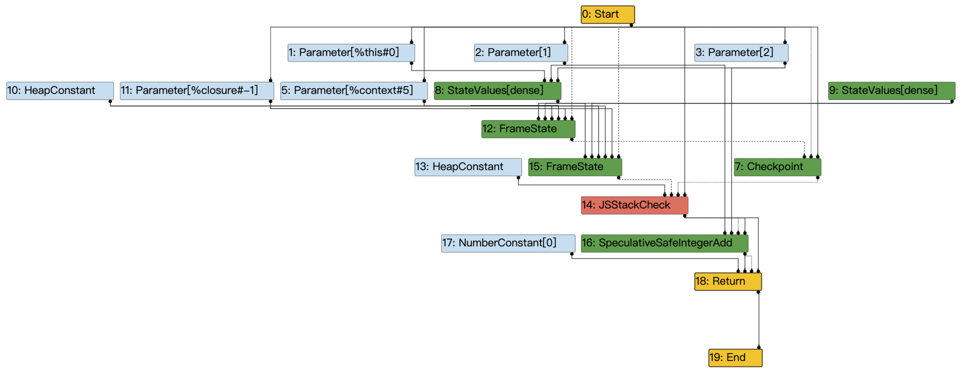 图2:在turbolizer中显示add函数的IR