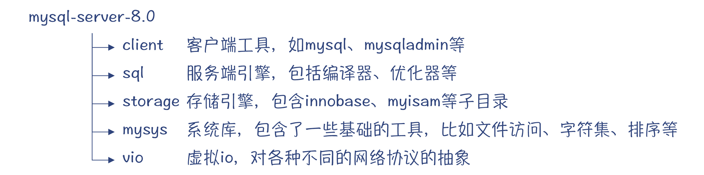 图1:MySQL的源代码包含的主要目录