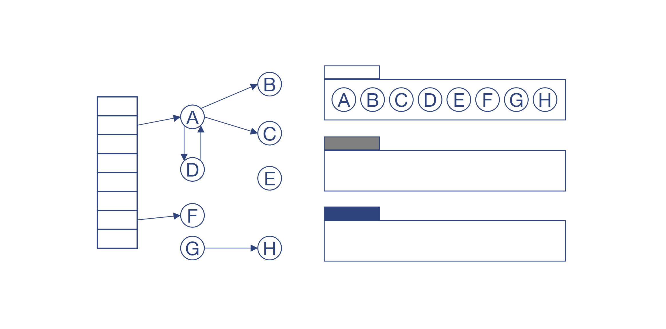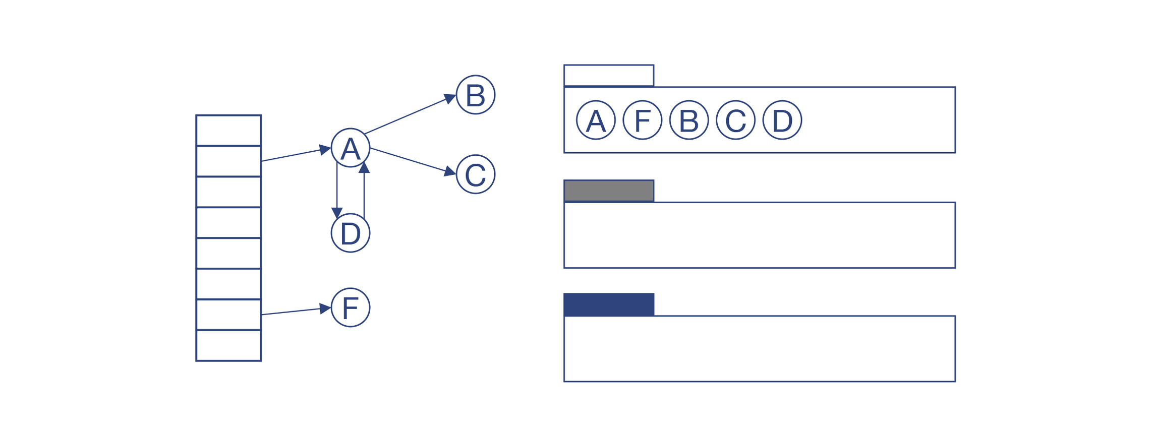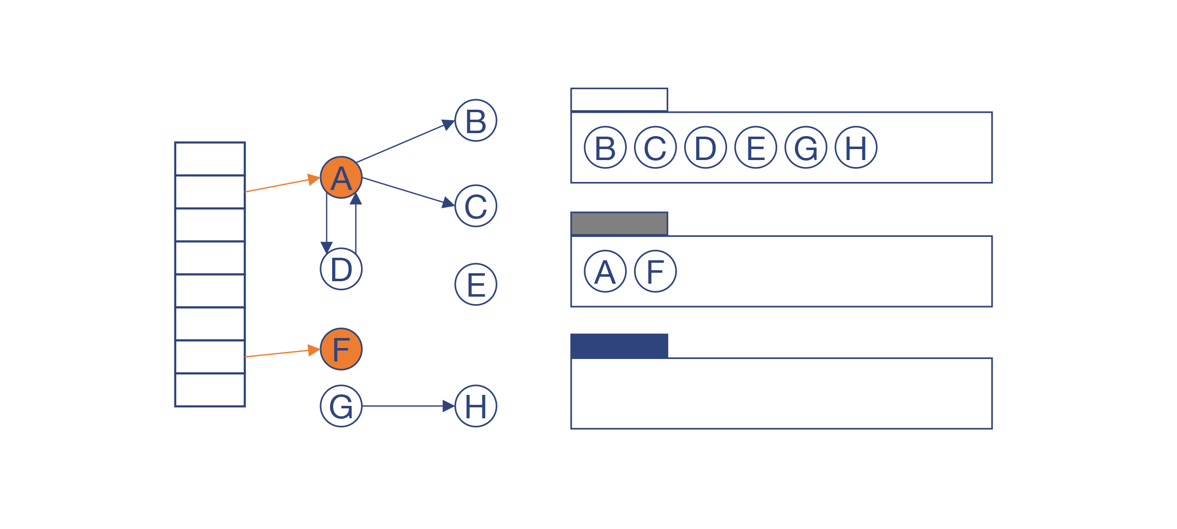 如果这个对象的所有子节点都被访问过之后,就把它标记为黑色。在例子中,A和F已经被标记为黑色,而B、C、D被标记为灰色。