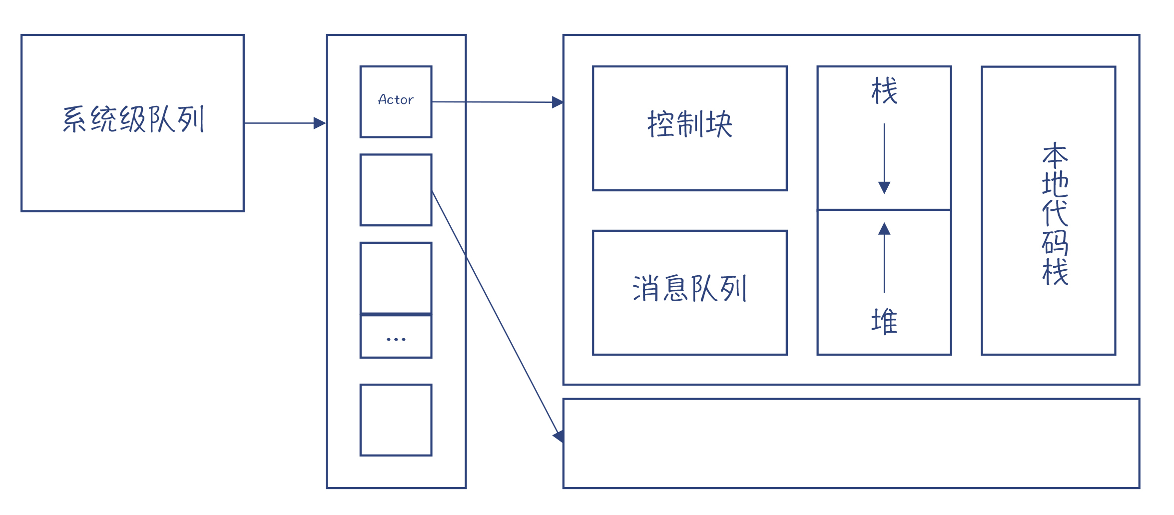 首先说栈。每个Actor也需要有自己的栈空间,在执行Actor里面的逻辑的时候,用于保存本地变量。这跟上一节讲过的Stateful的协程很像。