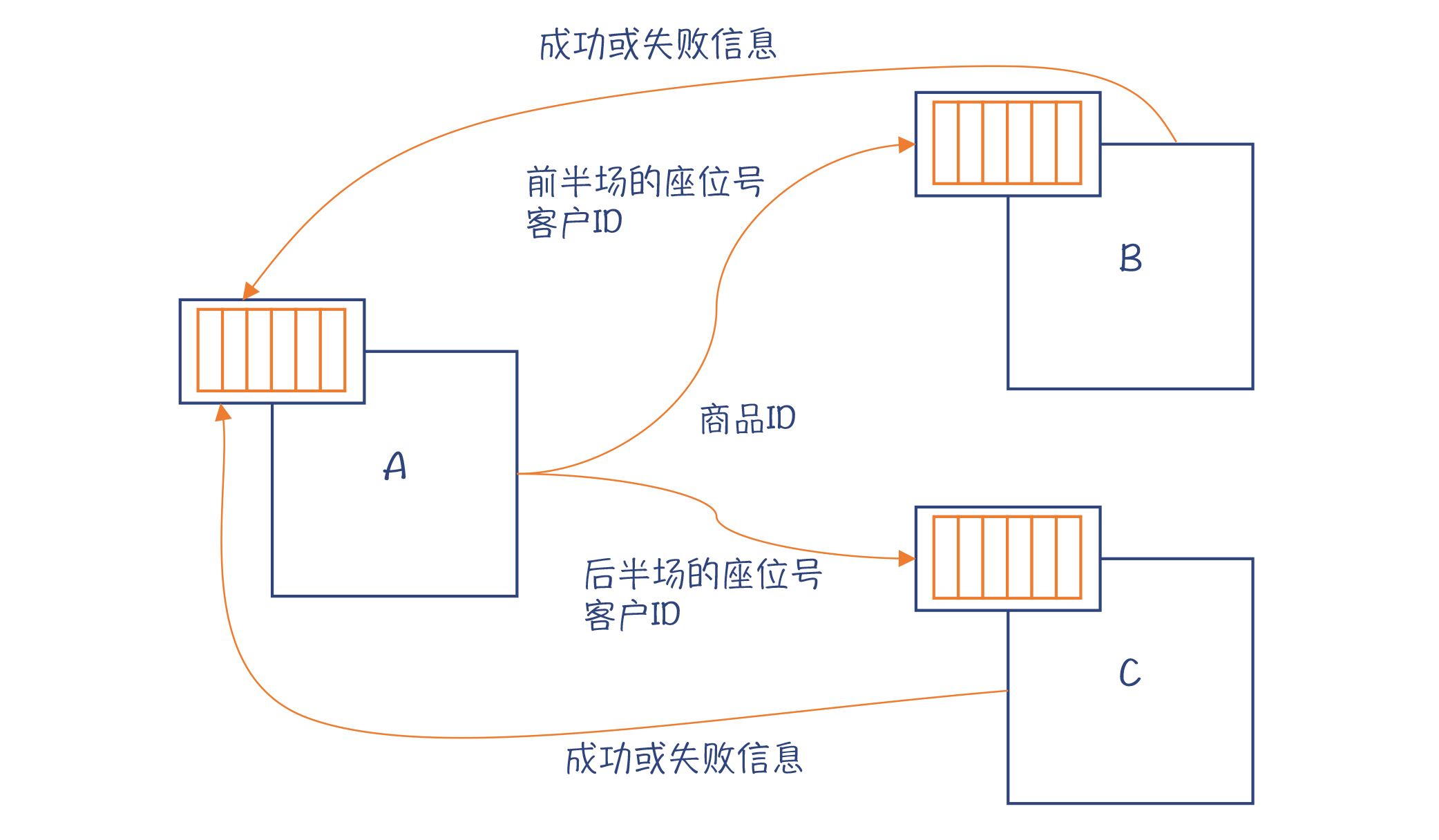 当然,实际的场景要比这个复杂,比如一次购买多张相邻的票等,但原理是一样的。用这种架构,可以大大提高并发能力,处理海量订票、秒杀等场景不在话下。