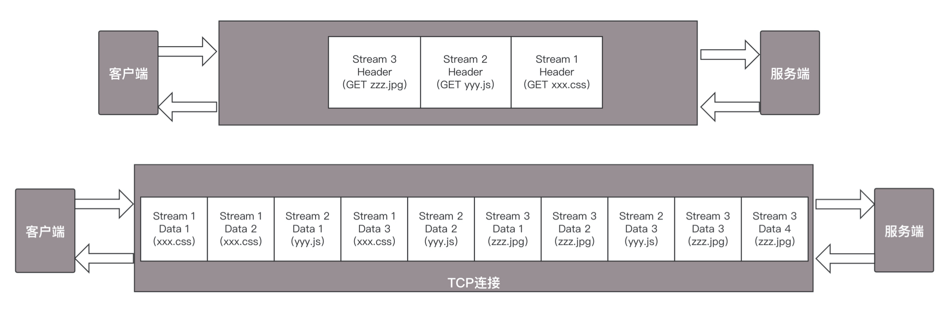 HTTP 2.0其实是将三个请求变成三个流,将数据分成帧,乱序发送到一个TCP连接中。