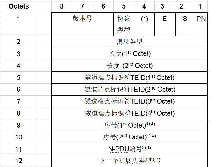 手机每发出的一个包,都由GTP-U隧道协议封装起来,格式如下。