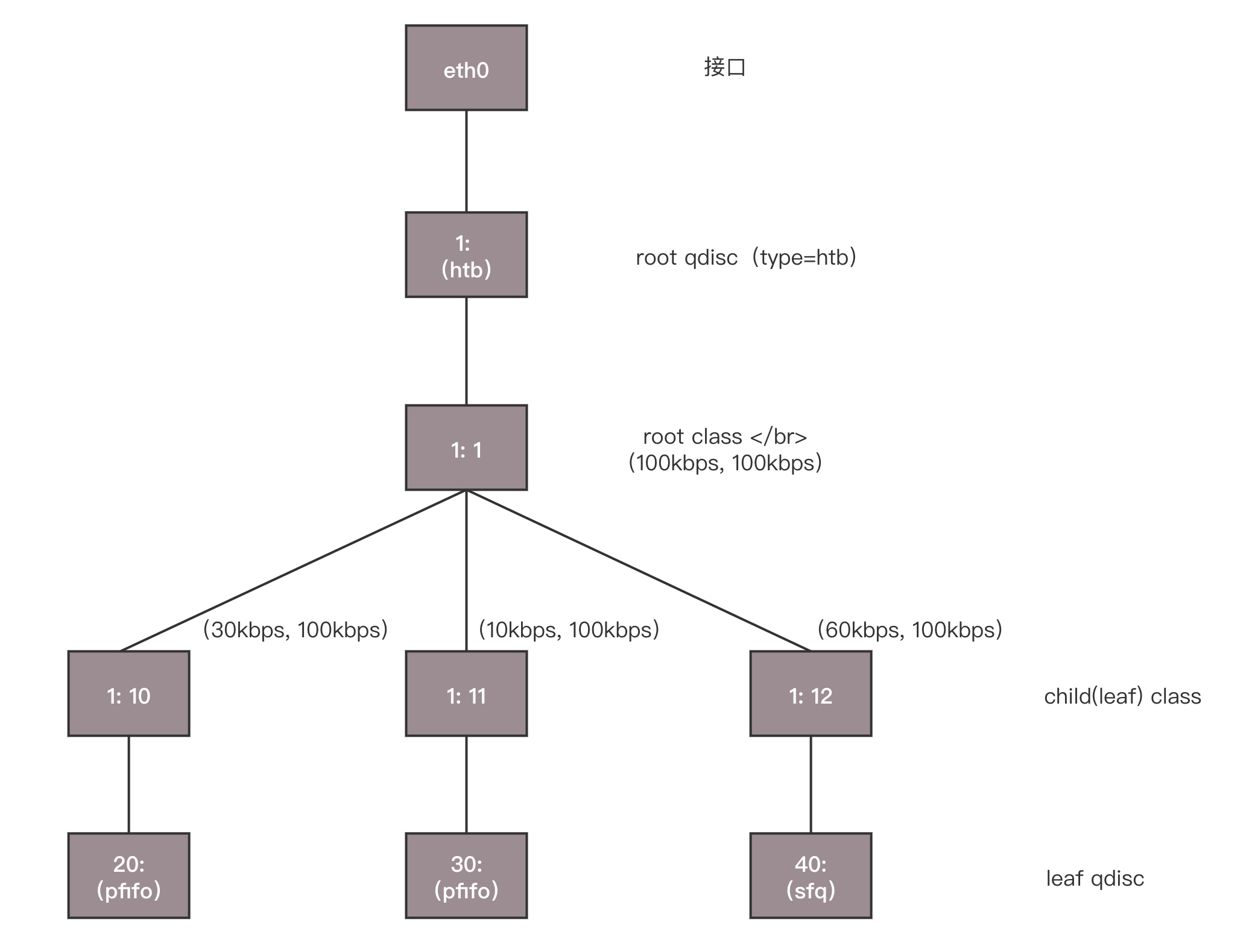 这样用户a的进程发的包,会打上1:10这个标签;用户b的进程发的包,会打上1:11这个标签。然后TC根据这两个标签,让用户a的进程的包走左边的分支,用户b的进程的包走右边的分支。