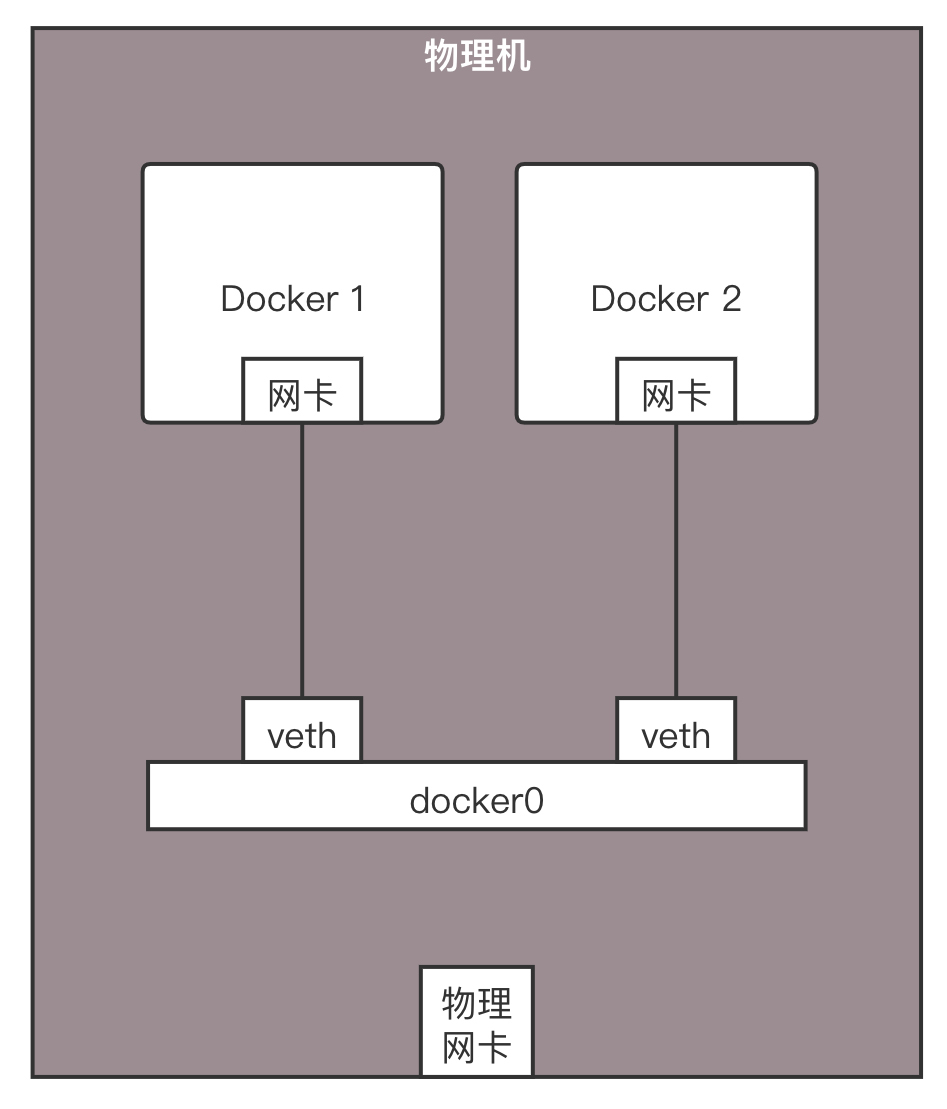 是不是和虚拟机很像?容器里面有张网卡,容器外有张网卡,容器外的网卡连到docker0网桥,通过这个网桥,容器直接实现相互访问。