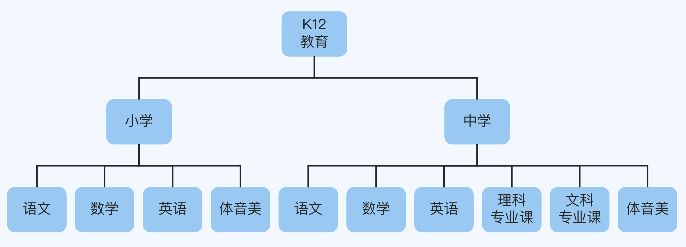 在小学部分,体音美一类不属于K12用户愿意付费的刚需,继续去掉,还剩下语数英。
