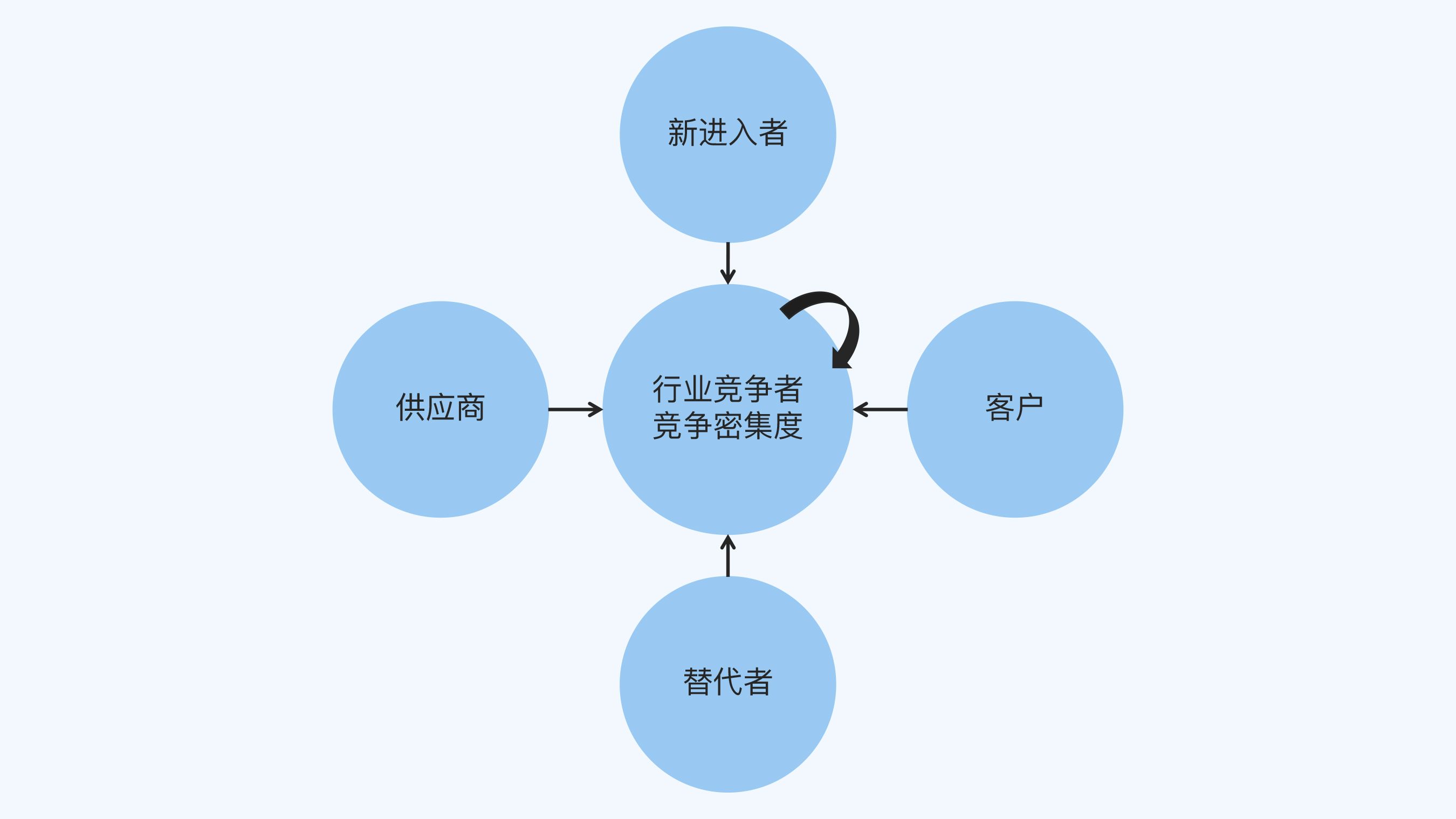 到了这个阶段,我们就要看一下M公司在整个生态环境中的发展态势,这时候可以用到关系图,比如经典的波特五力模型: