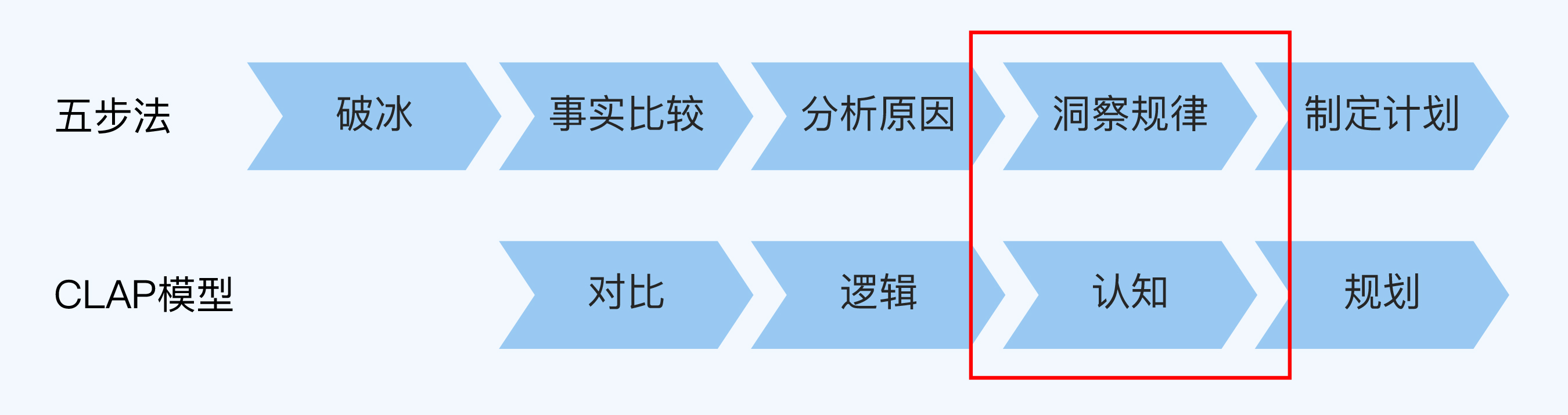 上一讲,我为你介绍了梳理逻辑时寻找切入点的方法。找到切入点,分析出问题原因之后,我们就到了洞察规律这一步,它正好对应CLAP模型的认知环节。
